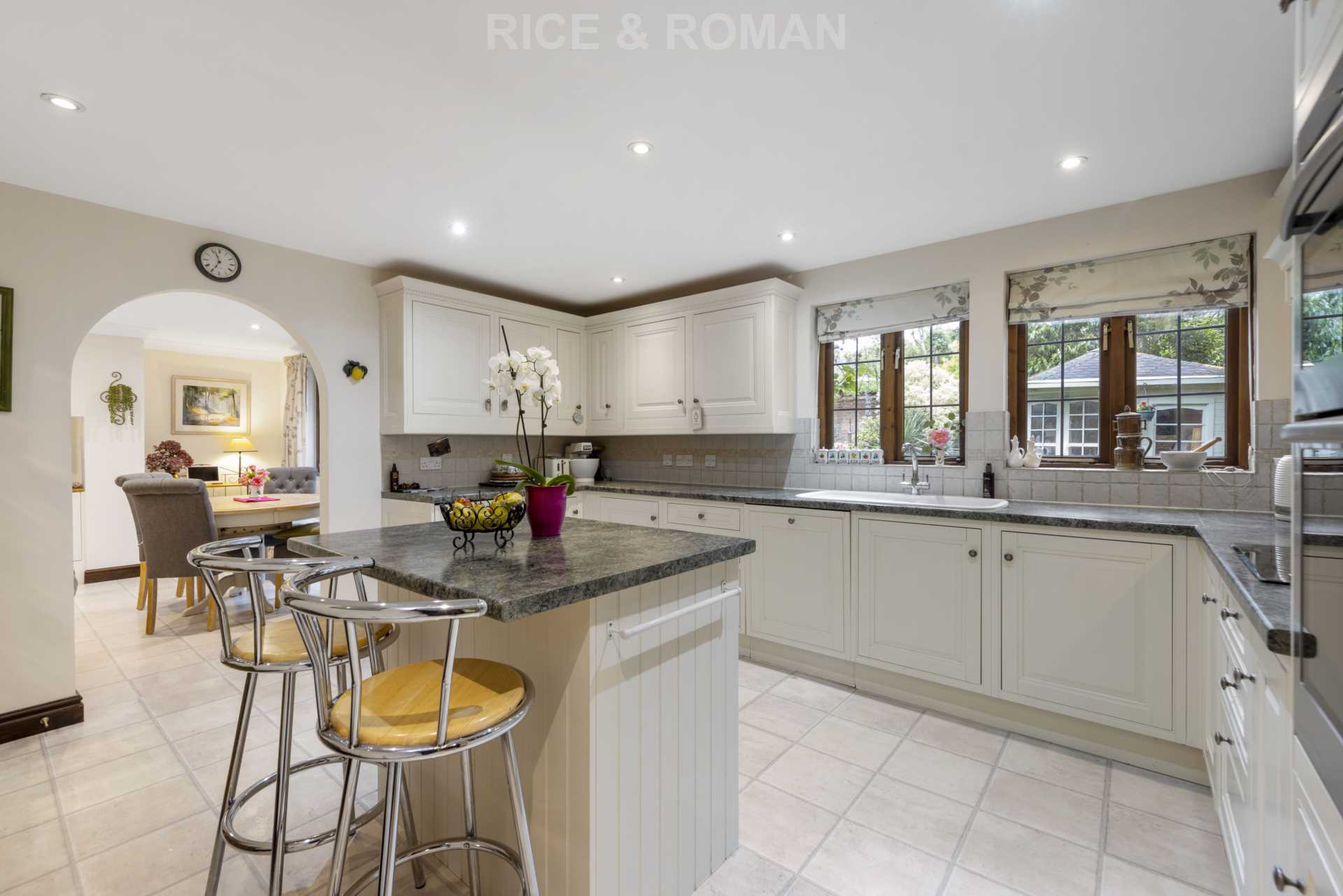 An impressive five-bedroom detached home set back from the road and benefiting from an exceptionally private southeast-facing rear garden.