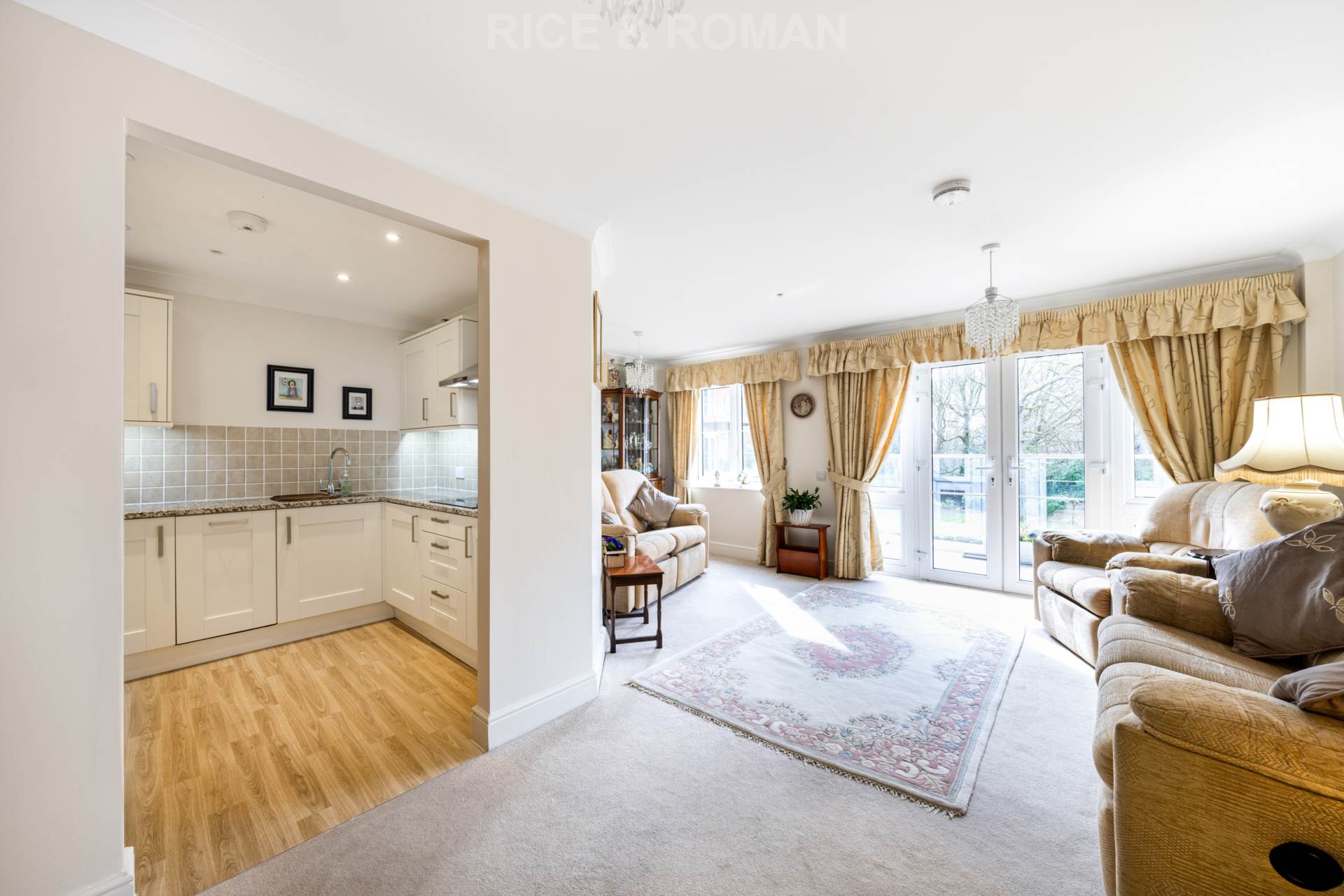 A south-facing two-bedroom apartment in the popular 65+ retirement development of Lynwood Village, in Ascot.