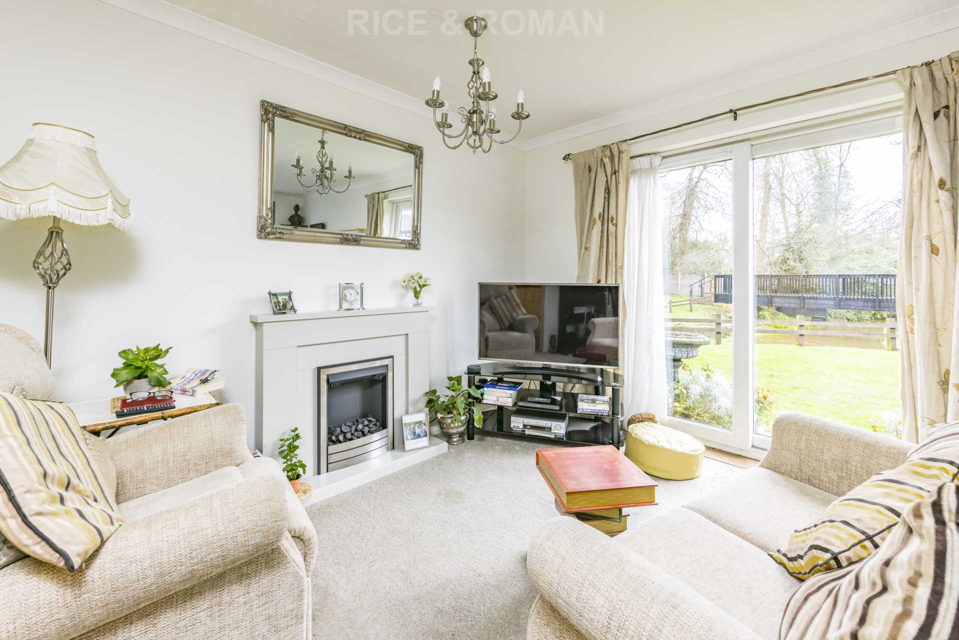 Tucked away at the end of a quiet Cul-de-sac and located with picturesque views over large garden area and stream is this stunning two bedroom ground floor apartment. The property consists of a bright and airy living room with direct access to private patio, Modern kitchen, Modern Walk In Shower, master bedroom with built-in wardrobes, guest bedroom, and hallway with storage cupboard. This apartment is offered in excellent condition throughout and comes with no onward chain.